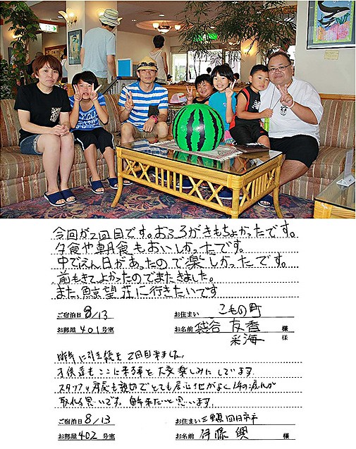 この度は、大切な夏の家族旅行に、数ある宿より私ども鯨望荘をお選び頂きまして誠にありがとうございます。